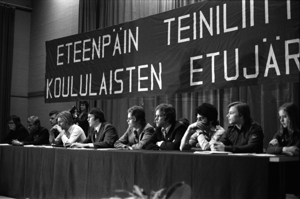 Valtakamppailut Teiniliiton hallituksen valitsevissa liittokokouksissa sekä kouluneuvostovaaleissa alkoivat pian uuvuttaa oppikoululaisten enemmistöä. Jäsenmäärää ei saatu enää kasvamaan, ja 1970-luvun jälkipuoliskolla valtaosa koululaisnuorista etääntyi teiniliittolaisuudesta myös henkisesti. Vaikka Teiniliitto järjestönä katosi, ei koululaisnuorten puoluetoimintaa ja siten yhteiskunnallista aktiivisuutta tulisi kuitenkaan sellaisenaan paheksua. Jakautuminen meihin ja muihin liittyi myös siihen ehdottomuuteen, herkkyyteen ja vimmaankin, joka on muutenkin nuoruudelle tyypillistä. Samalla rinnalle tuli myös uutta yhteisöllisyyttä sekä motivaatiota monenlaiseen toimintaan. Erityisesti vasemmistolaisten naisaktiivien muistoissa näkyi selvästi, että paikallistasolla teinien tarmo suuntautui edelleen kouluympäristön kehittämiseen, taksvärkkeihin ja muuhunkin kansainväliseen solidaarisuuteen.7 Puoluetoiminnasta oli tullut uusi nuorisokulttuurin muoto.